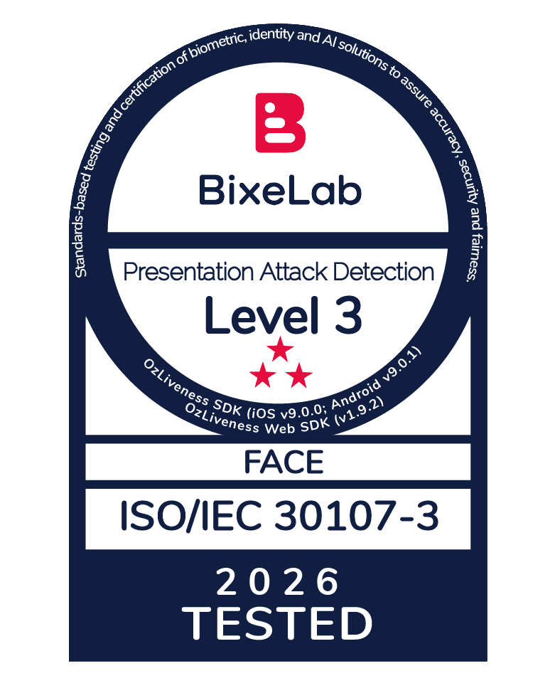 Oz Liveness, a cutting-edge face liveness detection solution within our facial recognition software, protects against biometric attacks. Tested and approved by iBeta (ISO 30107-3 Levels 1 & 2), our certified algorithms verify the presence of a living person and effectively withstand spoofing attacks, including deepfakes and 3D manipulations.